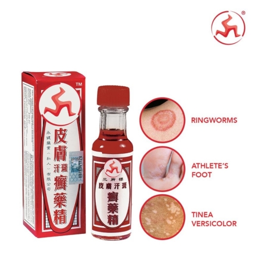 Cap kaki tiga ubat kurap/tinea skin solution三脚标皮肤汗斑廯药水 12ml Active Ingredients: Salicylic Acid, Benzoic Acid