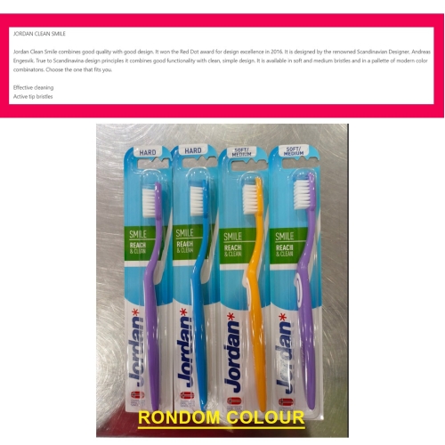 Jordan Clean Smile combines good quality with good design. It won the Red Dot award for design excellence in 2016 and was designed by the renowned Scandinavian Designer Andreas Engesvik. True to Scandinavian design principles, it combines purposeful functionality with clean, simple design. It is available in soft and medium bristles and a palette of modern color combinations. Choose the one that fits you.