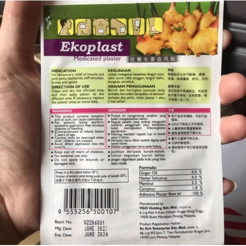 For relief of muscle & joint pains, backaches, stiff shoulder, bruise & sprain.