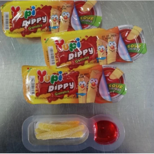 YUPI DIPPY GUMMY, JELLY THAT DIPS IN YUMMY SOUR SAUCE!