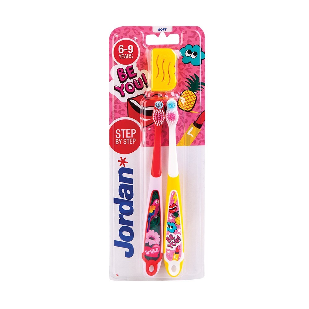 Step 2 (3-5 years) - Jordan’s Step 2 toothbrush is the type of toothbrush for toddlers. - Step 2 toothbrush has a decorative holder to entice kids. - It is made with a comfortable grip for both parents and kids. - Step 2 is also designed to clean milk teeth with its round head and soft bristles. - It also has a toothpaste indicator for the correct amount of toothpaste to use.