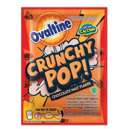 OVALTINE Crunchy Pop is a new snack in a form of flake that is crunchy and has a special taste of Ovaltine. When you pop and Crunch it, it will make you more energized. It is also great to enjoy it directly from the sachet. You can also use it as a topping for your favorite dessert or any food you prefer!